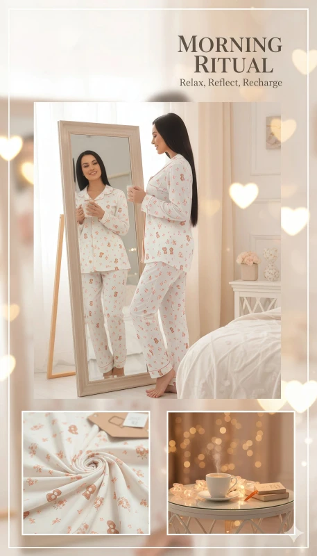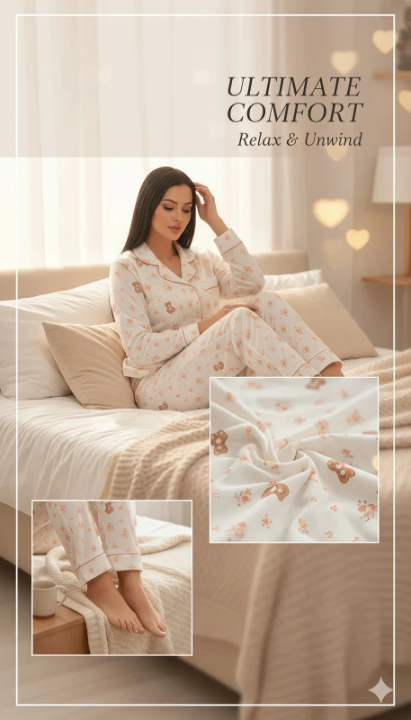 Crafted from a high-quality, soft-touch fabric, this pajama set promises a gentle feel against your skin, making it a true pleasure to wear. Whether you're unwinding after a long day, enjoying a leisurely breakfast, or simply seeking supreme comfort, this pajama set is an essential addition to your loungewear collection. Its whimsical design and classic silhouette make it a perfect gift for loved ones or a lovely treat for yourself, offering a blend of playful aesthetics and enduring comfort. This set isn't just sleepwear; it's an invitation to embrace relaxation in style.