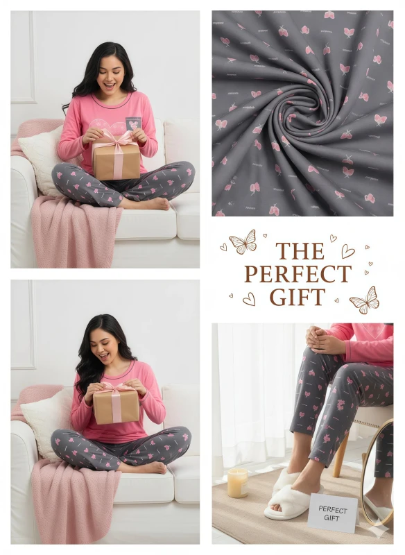 Crafted from what appears to be a soft and breathable fabric, such as cotton or a cotton blend, this set prioritizes comfort without sacrificing style. The thoughtful design, from the color blocking to the charming butterfly motifs, makes this pajama set a lovely choice for anyone seeking both coziness and a touch of feminine flair in their sleepwear.