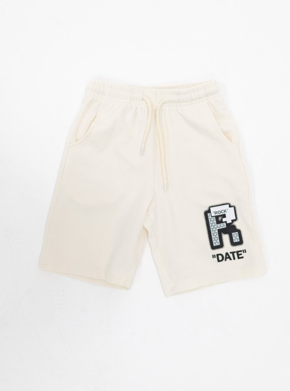 Boys’ Casual Embroidered “DATE” Set – T-Shirt & Shorts - White