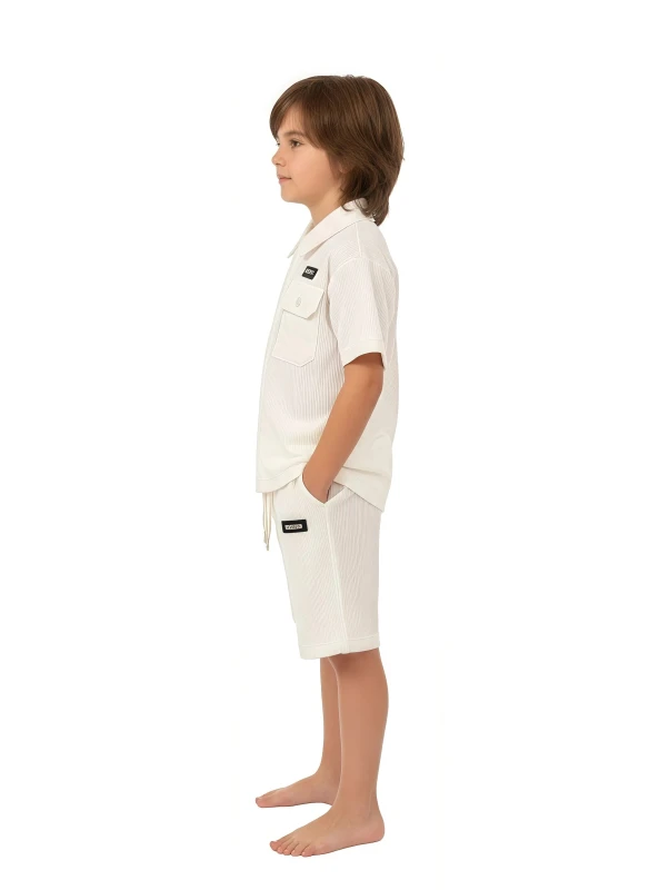 Boy's Monochrome Ribbed Shirt and Short Combo - White