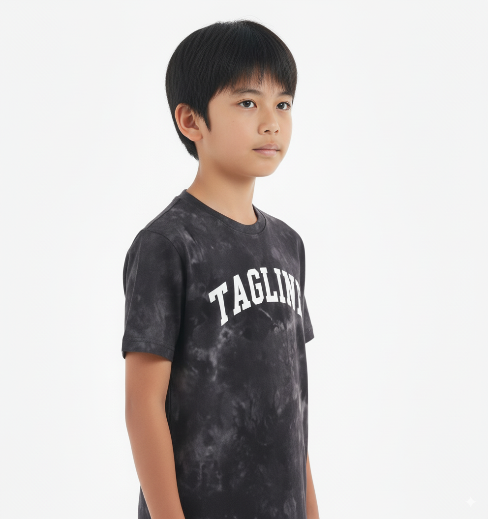 "Tagline" print design adds a chic element to these boys' T-shirts.