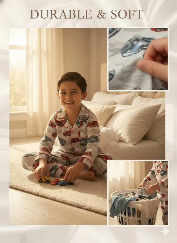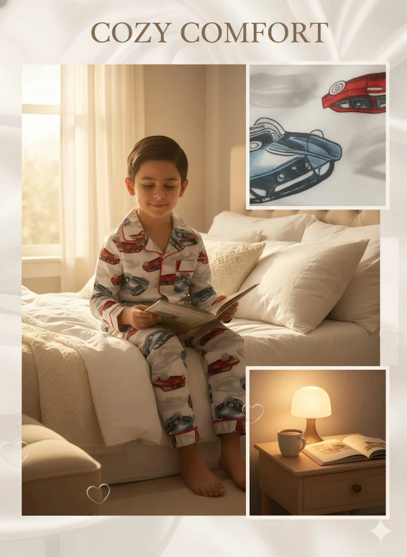 • Dynamic Car Print: Features a playful and detailed print of classic cars in red and blue, perfect for car lovers.