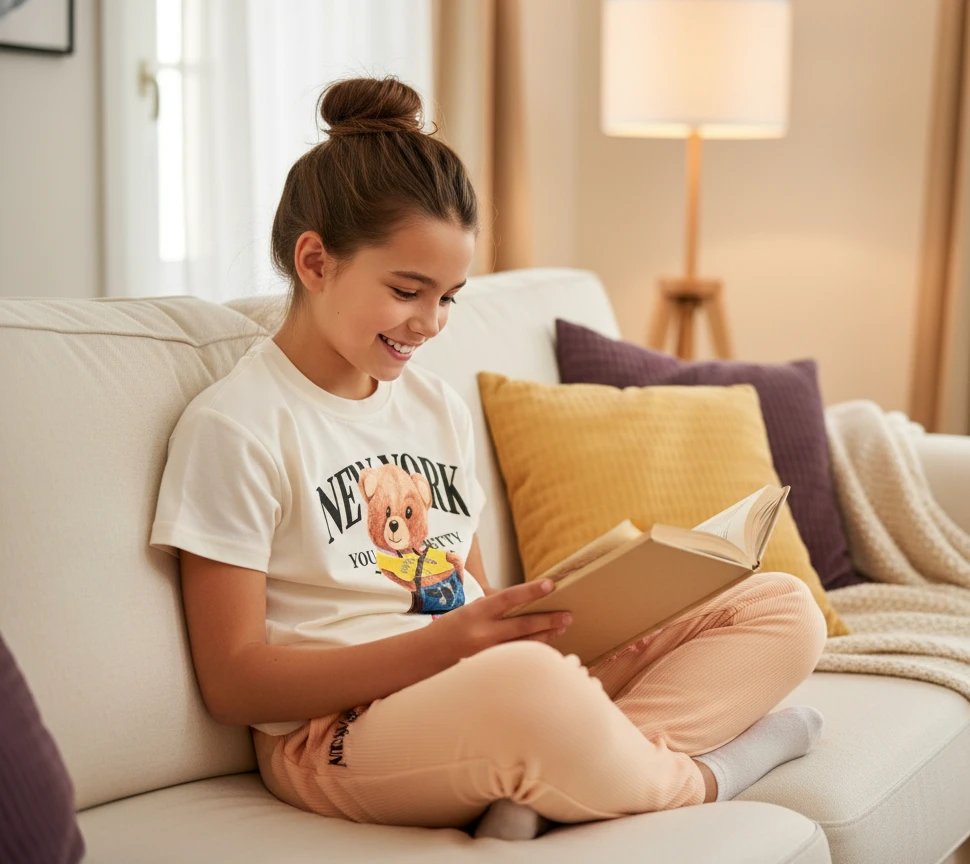 Let her express her playful side with this adorable and comfortable casual set! Featuring a charming black t-shirt adorned with a cute, denim-clad bear graphic and bold "New York" lettering, this outfit is designed for both style and ease. The soft, breathable fabric ensures all-day comfort, whether she's out and about or relaxing at home.