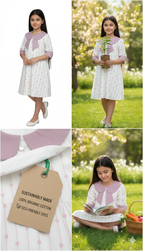 creating a whimsical pattern. A charming blush pink Peter Pan collar, accented