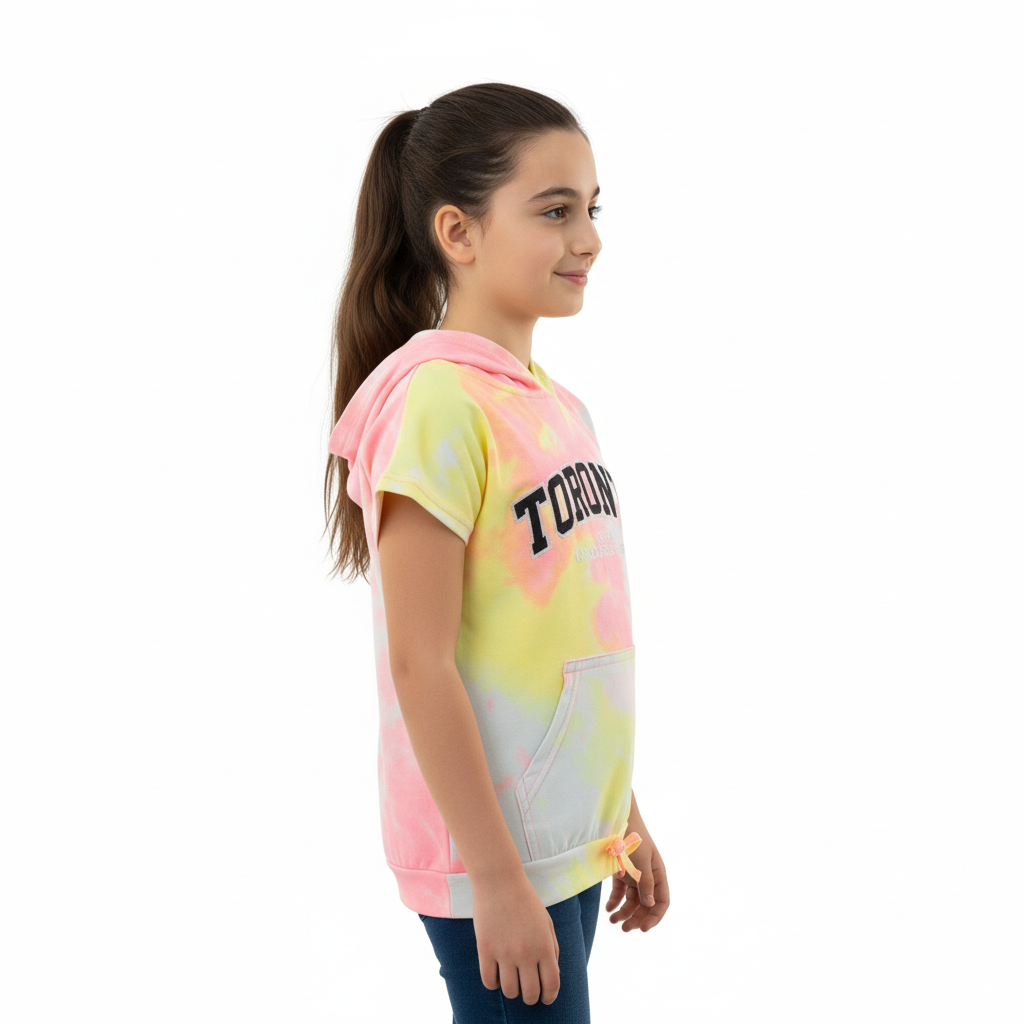 Girl's Toronto Never Underestimate Print Lowered Pocket Hoodie Short Sleeve T-Shirt - Yellow