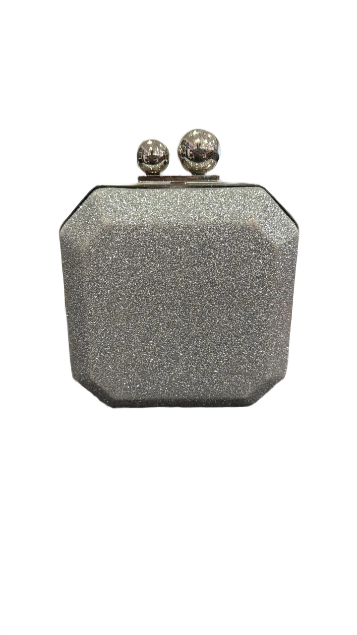 Color/Finish: silver bag, metallic silver, glitter finish, grey sparkle