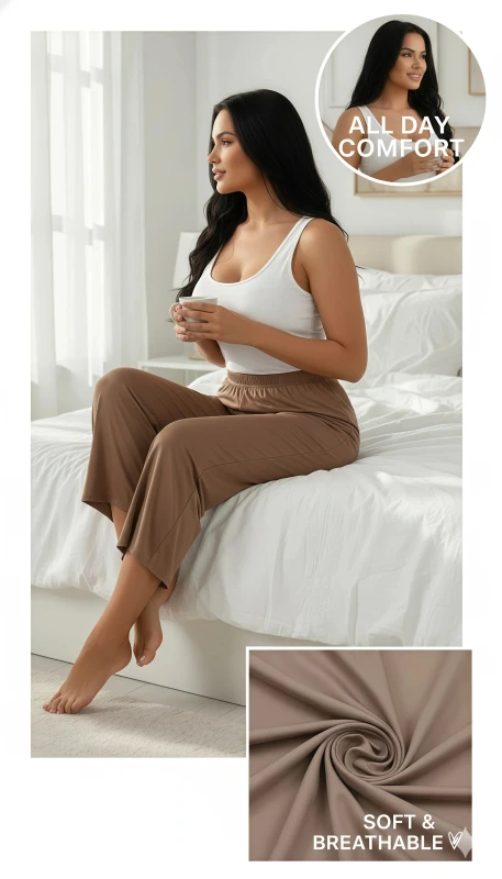 This item is a pair of black, loose-fitting, wide-leg pants. They appear to be made from a soft, lightweight fabric that drapes smoothly, possibly a jersey knit, modal, or similar comfortable material. The waistband is elasticated, visible by the slight gathering at the top edge, suggesting ease of wear. The length appears to be full-length, falling to or near the ankles.