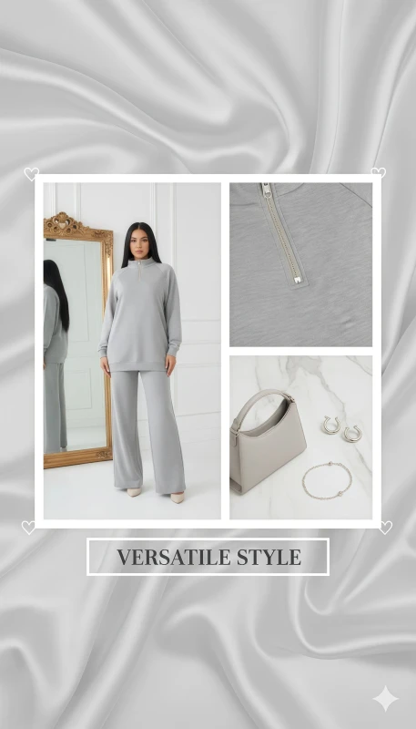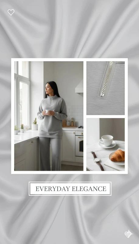 • Style/Vibe: Athleisure, minimalist, casual chic, relaxed style, modern loungewear.