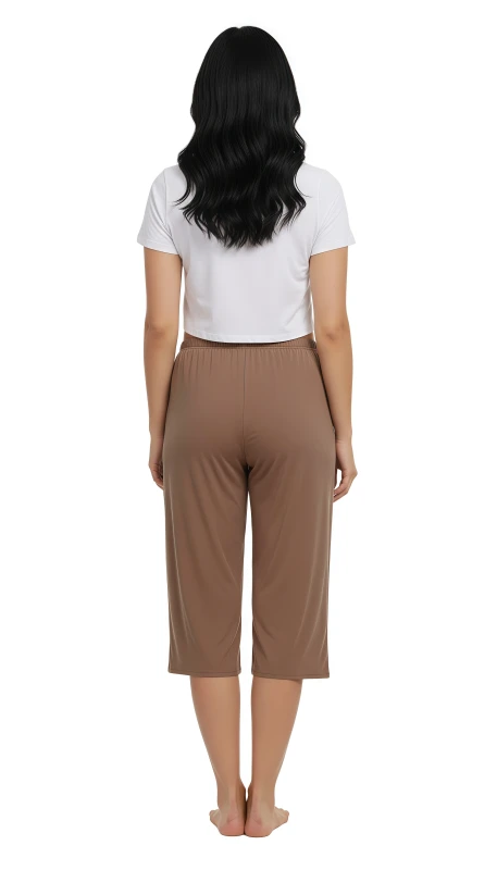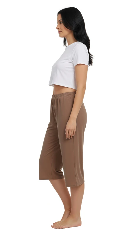 Women's Relaxed Fit Elastic Waist Pull-On Capri Pants - LightBrown