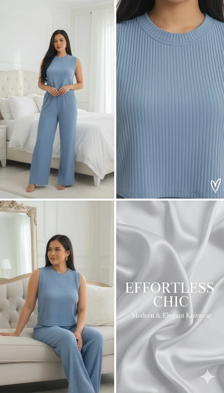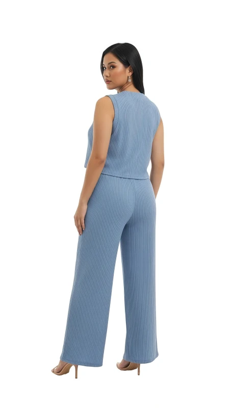 Elevate your casual wardrobe with this chic and comfortable two-piece ribbed lounge set. Designed for both relaxation and style, this set features a sleeveless top and matching wide-leg pants, perfect for creating a cohesive and fashionable look with minimal effort.