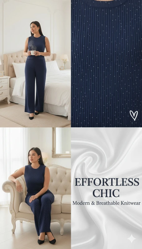 Elevate your casual wardrobe with this chic and comfortable two-piece ribbed lounge set. Designed for both relaxation and style, this set features a sleeveless top and matching wide-leg pants, perfect for creating a cohesive and fashionable look with minimal effort.