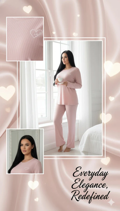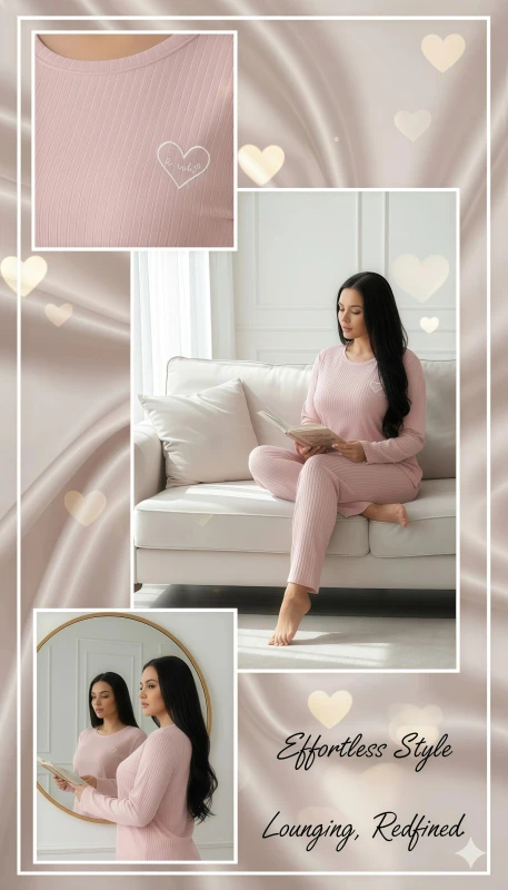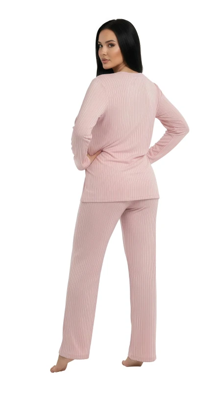 Women's Ribbed Long Sleeve Pajama Set - Pink