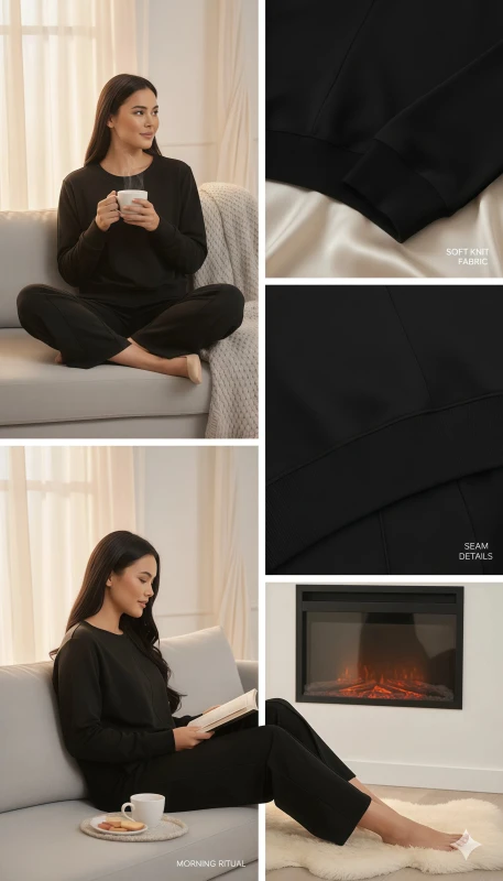 The top boasts a relaxed, yet flattering fit with subtle, well-placed seam details that add a touch of modern design without compromising on comfort. Its classic round neckline and long sleeves make it a versatile piece suitable for various occasions and seasons. The material drapes gracefully, ensuring a polished look.