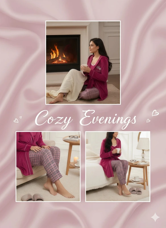 Specific Features: Warm pajamas, soft robe, breathable camisole, relaxed fit pants.