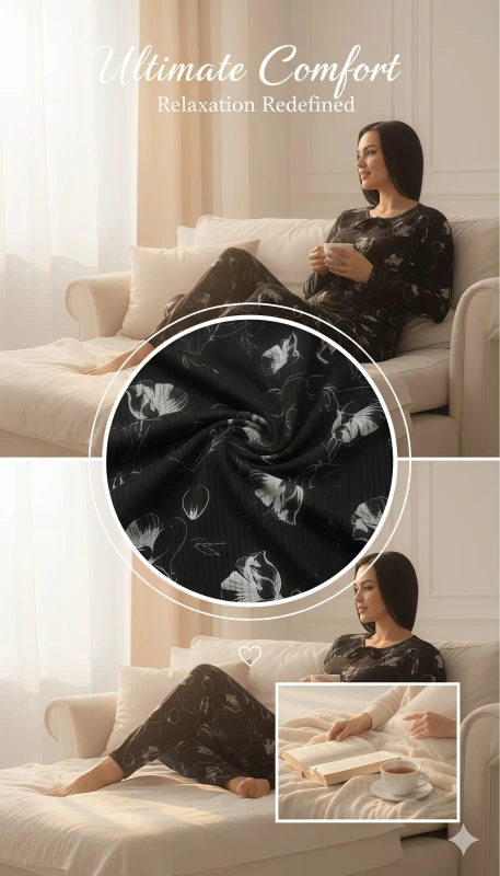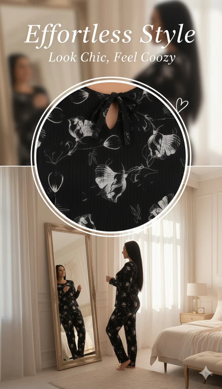 Experience Serene Comfort and Chic Style with Our Monochrome Floral Pajama Set